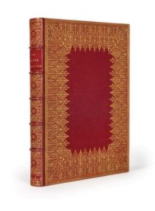 In-4 d'un titre et 317 pages, reliure du Second Empire en chagrin rouge, très large et fine dentelle dorée aux petits fers sur les plats, dos à nerfs orné, dentelle intérieure, tranches dorées, étui (Hardy).