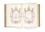 Deux frontispices, l'un ornemental, l'autre illustré, titre et faux-titre ornés imprimés sur papier glacé. Chaque double-page du volume est ornée d'encadrements ornementaux et historiés en chromolithographie or, argent et couleurs, d'une extraordinaire richesse et variété, véritable chef-d'oeuvre du genre.
