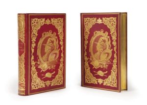 Deux volumes grand in-8, reliure de l'éditeur en chagrin rouge, décor doré à plaques avec fers spéciaux couvrant les plats et le dos, tranches dorées.