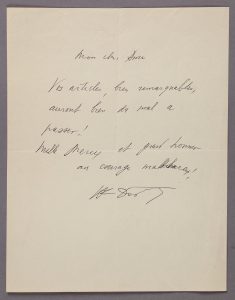 CÉLINE (Louis-Ferdinand). Lettre autographe signée " LF Destouches ", [adressée à Paul Chambrillon], sans date [vers 1957] ; une page in-4 (papier vélin Navarre écru, deux plis, très bon état). " Mon cher Ami. Vos articles, bien remarquables,...