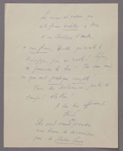 graces ! Le ridicule est que le livre ne te soit pas parvenu ! " [il s'agit de D'un château l'autre]. " […] Tu dois être saboté à la poste de Vence comme je le suis par les médecins et leur Diamant Berger qui les lient sous le fouet ! Rigolade de tout cette salade de haines, jalousies, rabaches, conneries ! ". Il conseille à Paraz de faire acheter le livre à Nice, " à mes frais, veille qu'on te le kidnappe pas en route ! ". Il termine, après la signature : " Ils sont venus me prendre une heure de connerie pour la Radio-Suisse " (allusion à l'entretien avec Louis-Albert Zbinden qui sera diffusé le 25 juillet 1957).