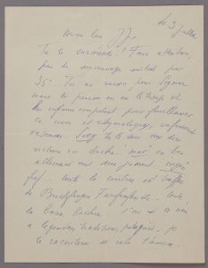 CÉLINE (Louis-Ferdinand). Lettre autographe signée " Ferd ", adressée à " Mon bon JJ " [Albert Paraz]. Le 3 juillet [1957] ; 2 pages in-4 (papier vélin Navarre écru, 2 plis mais très bel état). " Tu te surmènes ! Fais attention, pas de...