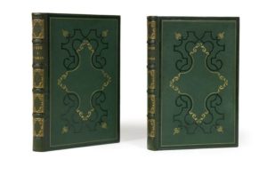 Ensemble deux ouvrages en deux volumes grand in-8, reliures uniformes de l'époque en chagrin vert, listels à froid et arabesques dorées s'entrecroisant sur les plats dans un encadrement d'un listel à froid et d'un filet doré, dos à nerfs ornés, gardes de moire blanche, tranches dorées.