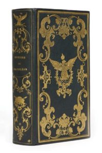 Grand in-8, reliure de l'éditeur en chagrin bleu nuit, sur les plats et au dos riche décor doré avec fers rocaille et attributs impériaux, aigle couronné au centre des deux plats, dentelle intérieure, tranches dorées.