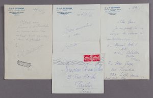adresses, très probablement de destinataires pour des disques en service de presse : " Je me permets de vous envoyer les adresses où éventuellement…. ". Suivent les adresses de Marcel Arland (NRF, Paris), Mac Gregor (New York), Dr Tuset (Quimper), et M. de la Tour du Pin (Paris).