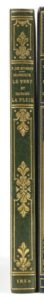 Petit in-8, bradel demi-maroquin vert avec coins, dos orné en long, non rogné, couverure illeutrée et dos conservés (Carayon).