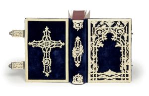 Belle reliure de paroissien à décor sculpté d'ivoire, parfaitement conservée.