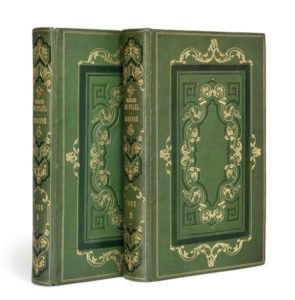Deux volumes in-8, reliures de l'époque en chagrin vert, deux filets dorés sur les plats encadrant un élégant décor de fines arabesques dorées courant dans un cadre de listels à froid, dos orné de même, filets dorés intérieurs, tranches dorées (Rossignol).