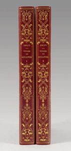 Deux volumes in-8, demi-maroquin rouge à long grain avec coins, dos joliment orné en long d'arabesques et fleurons dorés, non rogné, couverture conservée (Canape).