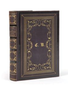 In-8, reliure de l'époque en chagrin aubergine, jeu de filets sur les plats encadrant une fine guirlande à arabesques dorée aux petits fers, dos orné, de même, dentelle intérieure, tranches marbrées.