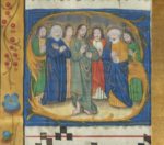 Belle redécouverte d'extraits d'une œuvre sans doute réalisée en collaboration par deux femmes artistes du groupe des “Maîtres de Raphaël de Mercatellis” : Cornelia van Wulfschkercke pour les initiales historiées enluminées en association avec une calligraphe ornementiste, peut-être Marguerite Wanzeele (?).
