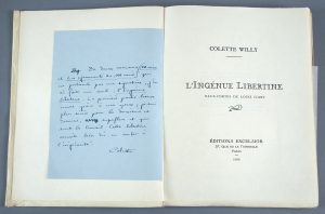 ICART. - COLETTE. L'ingénue libertine. Eaux-fortes de Louis Icart. Paris, Excelsior, 1926, grand in-4, broché, couvertures rempliées. Illustré d'un fac-similé d'une lettre de Colette, et de 20 eaux-fortes en couleurs de Icart, hors-texte. Tiré...