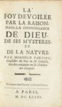 PARISOT (Jean Patrocle) La Foy dévoilée par la raison, dans la connoissance de Dieu, de ses …