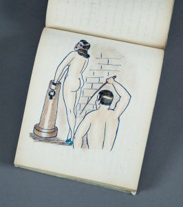 33 planches de figures libres, dessinées à l'encre bleue et coloriées au crayon. Texte en italien, très vraisemblablement inédit.