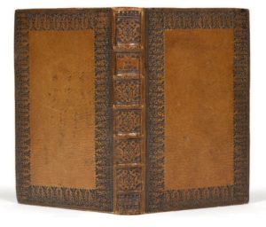 In-8 de 1 f. de titre et 260 pp. : maroquin havane, large dentelle argentée aux petits fers, dos orné, mince roulette intérieure, doublure de tabis vert, tranches dorées sur marbrure (reliure vers 1700).