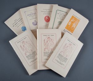 - FORBERG. Manuel d'érotologie classique, 3 vol., avec 16 planches (n° 11 de la collection). - Douze aventures érotiques du bossu Mayeux, fig. dans le texte (n° 12 de la coll.). - MAUPASSANT. A la Feuille de Rose, maison turque, 5 pl. (n° 13). - Les Doléances du portier des Chartreux ou les conseils de Dom Bougre. (n° 14). - Le livre de volupté (Bah-Nameh), 6 pl. (n° 15). - BOUCHARD. Les confessions d'un perverti (n° 16).