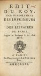 - Édit du Roy, pour le Règlement des Imprimeurs et des Libraires de Paris, Registré en Parlement le 21 Août 1686. Paris, De l'Imprimerie de Le Mercier père, 1731.
