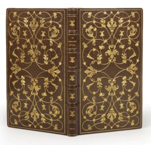 Remarquable reliure de Marius Michel, dont le décor d'entrelacs au filet et fers azurés, inspiré de la Renaissance, témoigne de la sûreté de sa main.