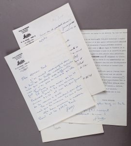 DUVERGER (Pierre). Ensemble de 4 documents in-4, dont une lettre autographe signée, adressée à Paul Chambrillon. [Paris], 30 mars 1973. 1 page, à en-tête " Pierre Duverger, Photographe spécialiste Leitz… ". Témoignage touchant, sans doute en...
