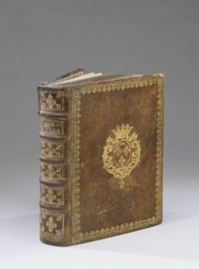 CESAR.LES COMMENTAIRES.A PARIS, en la Boutique de Camusat, chez Louis de VILLAC, 1652.Un volume, in-4, de (28) ff., 623 pp., 64 pp., (18) ff., pleine reliure ancienne en veau havane. Dos à 5 nerfs cloisonné, fleuronné de fleurs de lys et doré portant le titre doré. Dentelle doré d'encadrement sur les plats qui portent en leur centre des armes dorées, tranches dorées. Mors du second plat fendu sur trois cm près de la coiffe supérieure, coins supérieurs légèrement frottés.Reliure aux armes de Gaston d'Orléans.