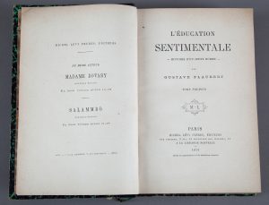 FLAUBERT (Gustave). L'Education sentimentale. Histoire d'un jeune homme. P., Michel Lévy frères, 1870, 2 volumes in-8°, [2] f., 427 p. + [2] f., 331 p., reliure époque demi-chagrin vert bronze, dos à 4 faux nerfs, caissons ornés, auteur, titre...
