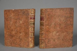DESAGULIERS John Theophilus.COURS DE PHYSIQUE EXPÉRIMENTALE. Traduit de l'Anglais par le R. P. Pezenas de la Compagnie de Jésus, Professeur Royal d'Hydrographie à Marseille.PARIS, ROLLIN & JOMBERT, 1751.Deux volumes, in-4, de XII pp., (1) f., 503 pp. - (2) ff., Iv pp., 636 pp., pleines reliures de l'époque en veau moucheté. Dos à 5 nerfs cloisonnés et fleuronnés portant les pièces de titre en maroquin rouge et de tomaison en maroquin vert, filets dorés sur les coupes, tranches rouges. Petites usures aux coins.Édition originale française, rare, dans la traduction d' Esprit Pézenas, illustrée de 2 vignettes de titre et 78 planches dépliantes représentant des instruments utilisés pour des démonstration de physique.