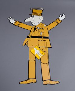 GAULE (Charles de). Marionnette caricaturale, imprimée sur carton en deux tons, composée de 7 pièces destinées à être réunies par des attaches parisiennes jointes, et d'un petit tableau d'assemblage. Sans nom d'auteur ni d'imprimeur (ce qui...