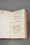 MARAIS Mathieu.HISTOIRE DE LA VIE ET DES OUVRAGES DE M. DE LA FONTAINE. Publiée pour la première fois avec des notes et quelques pièces inédites.DE L'IMPRIMERIE DES NOTAIRES. PARIS, RENOUARD, 1811.Un volume, in-12, de (2) ff., VI pp., 132 pp., demi-reliure de l'époque en maroquin rouge. Dos lisse décoré de filets dorés et portant le titre doré, roulette dorée autour des plats. Nombreux commentaires manuscrits, à l'époque, sur le faux-titre et les gardes l'un deux indiquant : " Relié par Bozérian jeune".Avec un portrait de La Fontaine en frontispice.