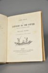 MARK TWAIN.LES AVENTURES DE TOM SAWYER. Traduit avec l'autorisation de l'auteur par William - L. Hughes.PARIS, HENNUYER, s d. (1884).Un volume, in-8 carré, de (4) ff., 238 pp., reliure rigide à la bradel de l'éditeur décoré en couleurs du titre et de motifs personnalisés sur fond crème, tranches dorées. Reliure signée Souze. Quelques rousseurs claires éparses.Illustrations par Achille Sirouy.