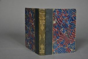 MAUPASSANT Guy de.AU SOLEIL.PARIS, OLLENDORFF, (1884).Un volume, in-12, de 304 pp., (1) f., demi-reliure en chagrin bleu. Dos lisse orné et doré portant le titre doré, filet doré sur les plats, tête dorée, couverture conservée. Sans la page de titre, dos légèrement et uniformément passé.Dessins de André Sureda, gravure sur bois de G. Lemoine. Récit de voyage recherché.
