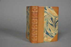 [ORTAZZO].LES BIJOUX DES NEUF SOEURS.PARIS, ROUVEYRE & BLOND, 1884.Un volume, in-8, de 247 pp., (3) ff., demi-reliure en chagrin citron. Dos à 5 nerfs cloisonné, fleuronné et doré portant le titre doré, filet doré sur les plats, tête dorée, couverture et dos conservés. Frottements légers sur les coins.Édition publiée dans la collection ""Écrin du bibliophile"", elle est ornée d'un titre frontispice gravé par Rouveyre d'après Cortazzo et de nombreuses gravures dans le texte. Tirage limité à 500 exemplaires numérotés, l'un des 450 sur papier vergé. Il est indiqué "Cet ouvrage ne sera pas réimprimé".