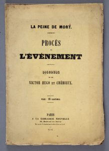 HUGO (Victor), CREMIEUX (I.-A.). La peine de mort. Procès de l'évènement. Discours de MM. Victor Hugo et Crémieux. P., Librairie nouvelle, 1951, in-8, 48 p. (poussière sur la couv., papier bruni, non coupé.) Édition originale de ce plaidoyer...
