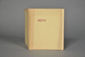[ARAGON Louis].IRÈNE [LE CON D'IRÈNE].s. l., s. n, s. d.Un volume, in-8, broché de 92 pp., (1) f., couverture en papier fort, paille. Titre imprimé en rouge sur le premier plat. Dos légèrement passé.Autre édition clandestine de cet ouvrage.