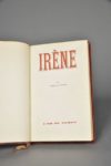 [ARAGON Louis]. Albert de Routisie.IRÈNE [LE CON D'IRENE].PARIS, L'OR DU TEMPS - Régine Deforges, 1968.Un volume, in-8, de XIV pp., 126 pp., (2) ff., pleine reliure en basane rouge. Dos lisse portant le titre doré, tête dorée, couverture conservée. Dos très légèrement éclairci.Après une réédition clandestine en 1952, mentionnée « chez l'auteur », réalisée par Jean-Jacques Pauvert ce livre est réédité en 1962, toujours confidentiellement.
