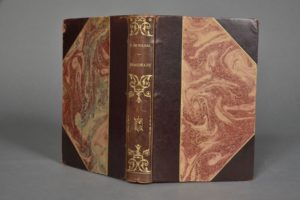 NOLHAC Pierre de.FRAGONARD 1732 - 1806.PARIS, GOUPIL & Cie, 1918.Un volume, in-8, de (2) ff., 221 pp., (2) ff., demi-reliure en basane marron. Dos lisse orné et doré portant le titre doré, filet doré sur les plats, tête dorée, couverture conservée. Dos faiblement et uniformément éclairci, frottements sur les coins.25 planches hors-texte, certaines en couleurs, dont le frontispice, et un portrait du peintre.