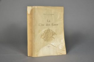 RÉGNIER Henri de - JOUAS.LA CITÉ DES EAUX.PARIS, COLLECTION ÉCLECTIQUE, BLAIZOT - KIEFFER, 1912.Un volume, in-4, broché, couverture rempliée, imprimée et décorée d'un grand blason. Bon exemplaire.Frontispice et 36 eaux-fortes de Charles Jouas.