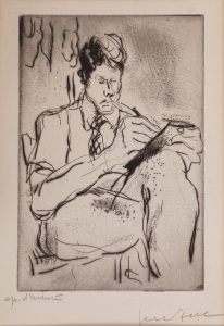 GEN-PAUL (Eugène Paul dit). Portrait de l'artiste vers 1925. Pointe sèche. Belle épreuve d'artiste sur BFK rives et signée à la mine de plomb, toutes marges. Rare. Dimensions au coup de planche : 22 × 14,7 cm. Dédicace gommée laissant...