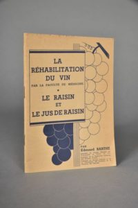 BARTHE Edouard, La réhabilitation du vin, s.d., un volume in-8, couverture imprimée et décorée.