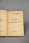 POMIANE, Cuisine et restrictions, 1940, un volume in-8 broché, couverture imprimée.
