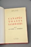 PAILLON Pierre, Canapés, Toasts, Sandwichs Pour Lunchs Et Soirées, 4ème édition augmentée, chez l'auteur, 1967, un volume in-8, demi-reliure en chagrin rouge, dos à cinq nerfs portant le titre doré, couverture conservée.