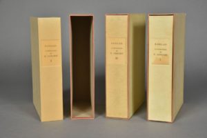 RABELAIS, illustré par Henry LEMARIE, Paris, éditions Le Rameau d'Or, trois volumes petits in-4 en feuilles sur chemises rempliées illustrées, doubles emboîtages de l'éditeur.
