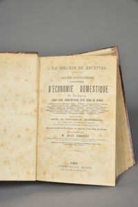 TROUSSET Jules, Un million de recettes - Grande encyclopédie illustrée, Paris Fayard, s.d., deux forts volumes in-4, demi-reliure XIXème en basane bordeaux, dos lisse décoré de filets dorés et portant les titres dorés, nombreuses illustrations dont les planches hors texte en couleur, piqûres éparses.