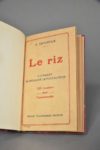 ESCOFFIER, Le riz : l'aliment le meilleur, le plus nutritif : 120 recettes pour l'accommoder, Paris, Flammarion, 1927, un volume in-12, demi-reliure en chagrin violet, dos à cinq nerfs orné et doré portant deux pièces de titre en maroquin vert.