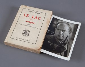 PARAZ (Albert). Le lac des songes. Roman. Illustré de fresques peintes par l'auteur. Bourg-en-Bresse, Éditions bressanes, 1950, in-8, broché (couv. tachée). Exemplaire enrichi d'un portrait photographique original d'Albert Paraz (13x18), d'une...