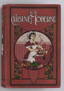 COLLECTIF, La cuisine moderne illustrée : comprenant la cuisine en général, la pâtisserie, la confiserie et les conserves, alimentation de régimes classéesLe plus complet des livres de cuisine, Paris, Quillet, vers 1912, un volume in-8, reliure éditeur illustrée en couleur sur fond de percaline rouge.