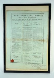 [Franc-Maçonnerie] Tableau des FF qui composent la R L St Jean d'Ecosse, sous le titre distinctif des Amis des Moeurs, à l'O de Maubeuge, à l'époque du 24ème jour du 4ème mois de l'An de L V L 5808.