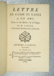 BARTHE : lettre de l'Abbé de Rancé à un ami. Genève et paris, Duchesne et Panckouke, 1765. Une estampe, une vignette, un cul de lampe.