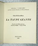 KAFKA (Franz) : La Taupe géante. Paris, Fontaine, 1945. Collection d'âge d'or. Un volume.