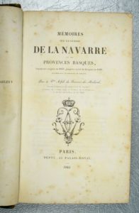 BARRES du MOLARD (Alphonse de, vicomte) : Mémoires sur la guerre de la Navarre et des provinces Basques depuis son origine en 1833 jusqu'au traité de Bergara en 1839. Paris, Dentu, 1842. Un volume.