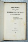 [CARRIERE (Victor de)] : Des Droits directs et éventuels des Bourbons d'Espagne, de Naples et de Parme. Paris, Dentu, 1840.